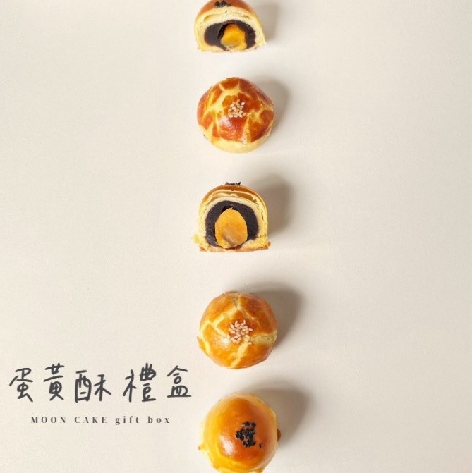 蛋黃酥為中式經典糕點,外層酥皮層層分明,內餡鹹甜交織,深受各年齡層喜愛。